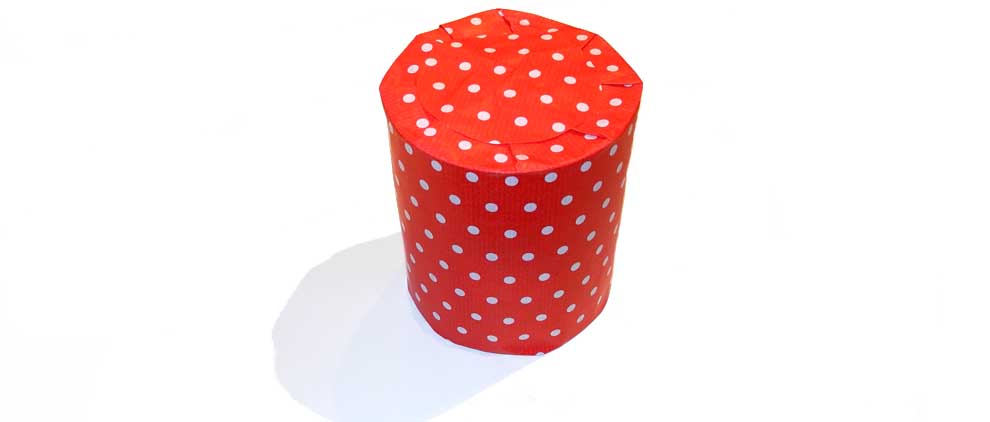 Um die Länge des Geschenkpapiers zu bestimmen, wickel das Papier einmal um die Büchse und gib 10 cm dazu.