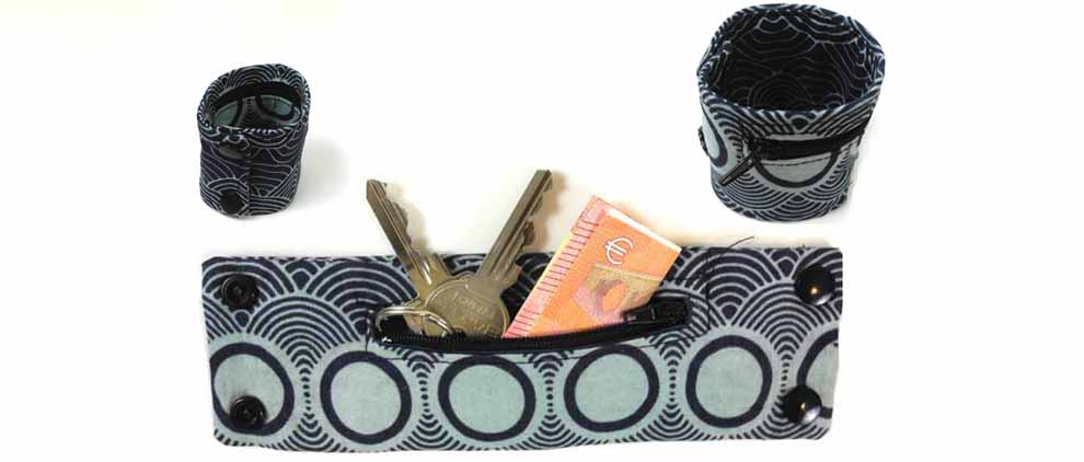 Mit dieser Handgelenktasche können Kleinigkeiten wie Geld oder Schlüssel sicher aufbewahrt werden, ohne dass sie stören. Wenn ein schöner Stoff dafür verwendet wird, ist dieses Täschchen nicht nur nützlich sondern auch ohne Inhalt einfach ein schönes Armband.