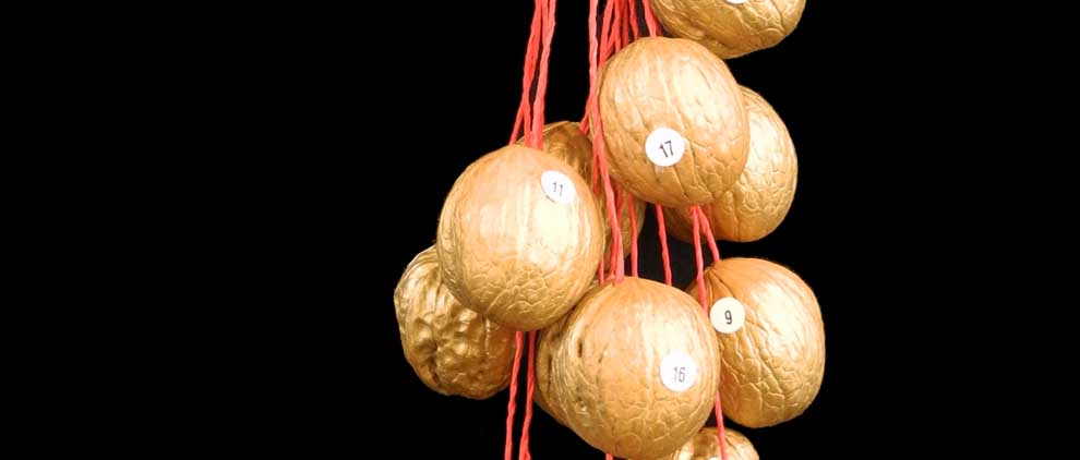 Sind die Nüsse trocken, werden Sie mit den Klebezahlen nummeriert.